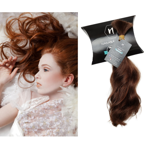 Szakszerűen tincsekben levágott, majd osztályozott női haj, póthaj. 30-35 cm 62 gramm közepesen vastagszálú, fényes, extra tömör, hidratált póthaj. hullámos festetlen, természetes vörös szín női haj osztályozott Hajhosszabbításhoz, hajpótlásho