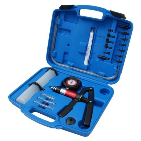 Használható: - vákuummal működtetett alkatrészek tesztelésére - motor mechanikai vizsgálatára - fék, sebességváltó és kuplung légtelenítésére/leszívására/feltöltésére. G1/3 Vákuum hatás 0-1bar Nyomás 0-3bar Tartály (2x120ml) Tömlő 2x6