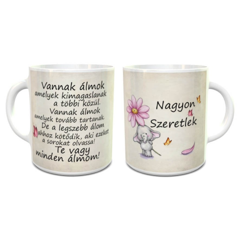 Szerelmes ajándék, Te vagy minden álmom bögre. Ajándékozd meg kedvesedet egy bögrével, amivel elmondhatod neki, mennyire fontos számodra. Tökéletes meglepetés lehet Valentin nap, vagy évforduló alkalmából. Egyedi nyomtatású bögréink kiváló választások
