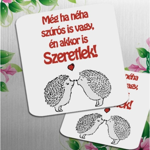 Szerelmes nagy hűtőmágnes, ha néha szúrós is vagy. Még ha néha szúrós is vagy én akkor is szeretlek, feliratos hűtőmágnes cuki sünikkel valentin napra, születésnapra szerelmednek. A négyzet alakú hűtőmágnes anyaga 1 mm vastag mágnes lap, hátterének színe