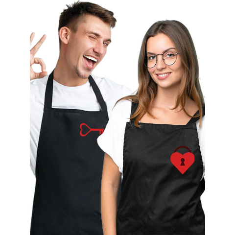 Valentin napi kötény, kulcs a szívemhez. Kötény Valentin napra, házassági évfordulóra szerelmednek. Lakat és hozzá illő kulcs mintás termosz, szerelmeseknek akik tökéletes páros együtt. Ajándékozd meg szerelmed és magadat egy páros köténnyel, amit együtt