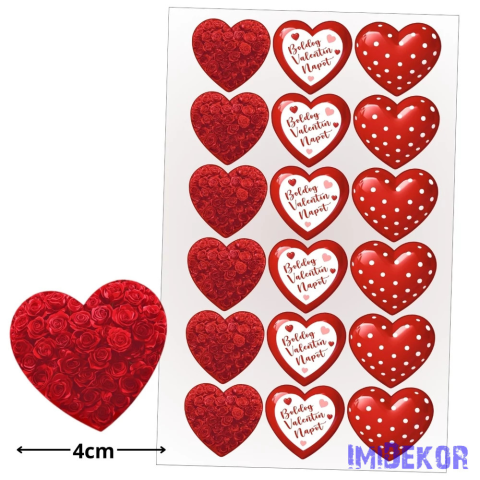 Valentin napi szív matrica 3 féle 18db/lap dekorációs kellék árgrafikon