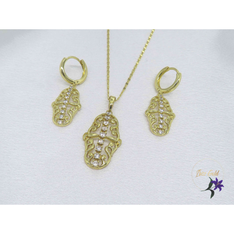 Antiallergén gyönyörű csipkemintázatú szett nyaklánc medállal, fülbevalóSzin: 14K Méret: Lánc 55 cm Medál: 35x15mm Fülbevaló: 35x13mm Zár: karika belső méret 10mm