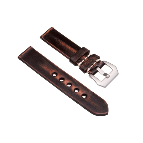 Bőr óraszíj Szín: sötét barna (koptatott) Anyaga: bőr, matt szürke Panerai stílusú csat Szélessége: 20 mm Hossz: 120/78 mm + csat Vastagság: 3 mm Használja letölthető méretezési segédletünket!