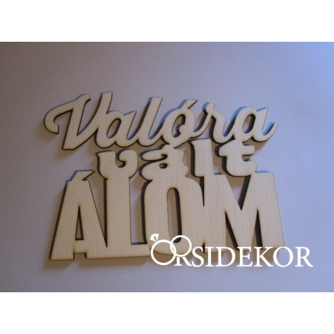 Tedd különlegessé a dekorációt ezzel az egyedi kézműves fa Valóra vált álom felirattal! Elhelyezheted a főasztal mögötti hátfalra, vagy a bejárathoz. Anyaga: fa Mérete: 13x19 cm Vékony fából készült termék, így nem áll meg a saját lábán, csak egyéb de