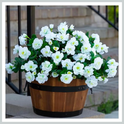 Valósághű művirág kültéri dekoráció fehér AP729761-fTermészetes hatású megjelenés – Élethű szirmok és levelek gondosan kidolgozott részletekkel.Tartós és időtálló – Minőségi műanyagból készült, nem hervad el, nem igényel öntözést.Dekoratív méretek – Egy csokor teljes hossza: kb. 35 cm, átmérője: kb. 22 cm, virágfejek mérete: 5,3 cm.4 db csokrot tartalmaz az ajánlat! Sokoldalú felhasználás – Tökéletes otthoni, irodai, esküvői, erkély- vagy