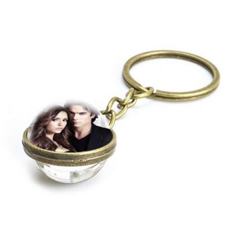 Elena és Stefan fotójával díszített 3D üvegmedálos kulcstartó. Tökéletes ajándék minden Vámpírnaplók rajongónak