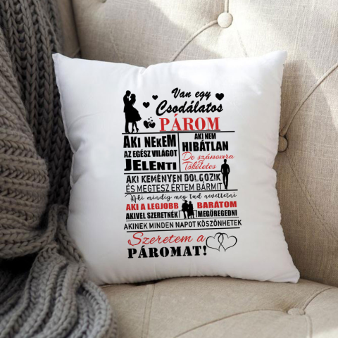 Van egy csodálatos párom párna. Olyan ajándékot keresel amivel kifejezheted, mennyire szereted a párod? Ez a különleges, feliratos párna tökéletes választás szerelmeseknek évfordulóra, Valentin-napra, születésnapra vagy karácsonyra. A párnán található rom