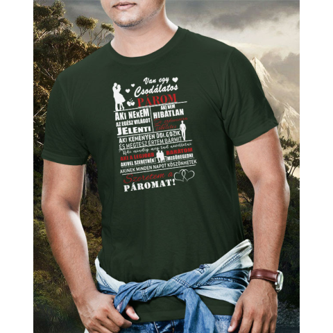 Van egy csodálatos párom póló. Van egy csodálatos párom póló. Olyan ajándékot keresel amivel kifejezheted, mennyire szereted a párod? Ez a különleges, feliratos póló tökéletes választás szerelmeseknek évfordulóra, Valentin-napra, születésnapra vagy karács