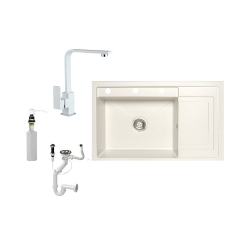 Vancouver V80-52BI Gránit mosogató + Design csap + Dugóemelő + Adagoló (fehér)