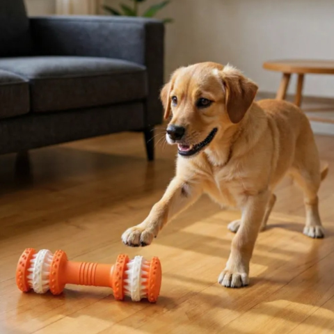 Vaníliás fogtisztító rágójáték kutyáknak - Súlyzó - Narancs játék kutyáknak 1 kép
