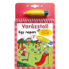 Vedd ki a varázstollat! Távolítsd el a fedelet, töltsd fel a tollat vízzel, majd óvatosan csavard vissza a fedelet. Kérheted felnőtt segítségét is. Most következik a színezés. Óvatosan tedd a varázstoll ecsetét egy pontra, és húzd végig a képen az ecsetet