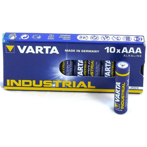 Varta Industrial AAA 4003 Box10 Gyártó: Varta Feszültség: 1,5V Teljesítmény: 1200mAh Típus: Alkaline Szín: kék Méret: 44,5mm x 10,5mm Súly: 110 gr. 10 db / csomag 1 db / ár 4-es kiszerelés -zsugorfólia A 10-es papír a 4-es zsugorfóliás kiszerelésben