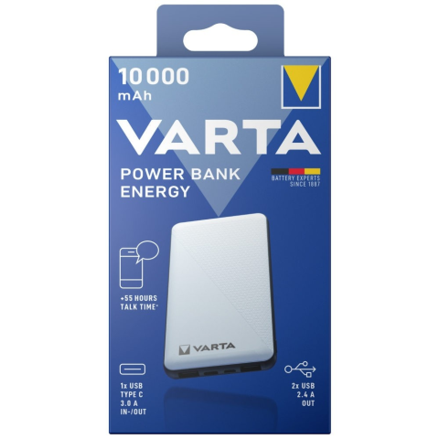 POWER BANK ENERGY 10000 Töltődj fel bárhol! A VARTA Energy külső akkumulátorok 4 kapacitásban kaphatók, hogy minden egyéni energiaigényhez a megfelelő megoldást kínálják. Akár 3 eszközt is feltölthetsz egyszerre megbízhatóan és gyorsan USB-C PD és USB A Q