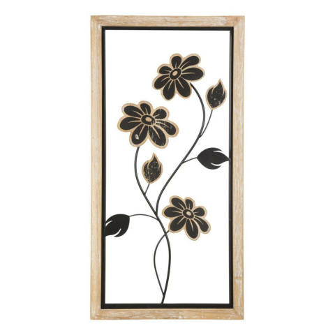 Fali díszpanel virágmintával - elegáns fa és fém kombináció 🌼 Ez a 3D-s fali díszpanel egyedi megjelenést kölcsönöz otthonának. A finom virágmintát sötét színű fém elemek alkotják, melyeket egy világos fa keret vesz körül. Tökéletes választás modern...