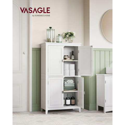 1 kép VASAGLE Álló Fürdőszobai Tároló Szekrény Fehér 4-Ajtós Állítható Polcokkal