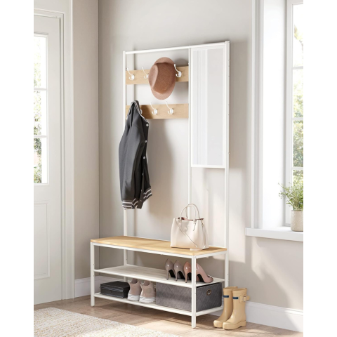 1 kép VASAGLE Előszobafal tükörrel és cipőspolcokkal tölgy/fehér HSR415W09