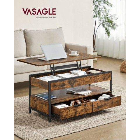 1 kép VASAGLE Emelhető Tetejű Dohányzóasztal Tárolófiókokkal Rusztikus Barna-Fekete