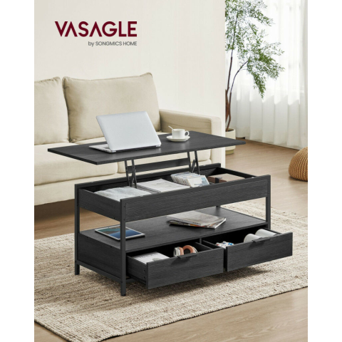 1 kép VASAGLE Felnyitható Dohányzóasztal Tárolóval Antracit-Fekete