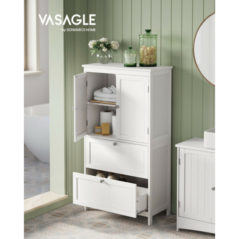 1 kép VASAGLE Fürdőszobai Állószekrény Fehér MDF 2 Fiókos 2 Ajtós