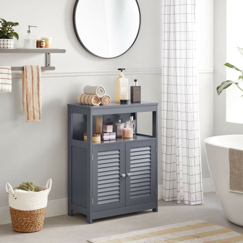 VASAGLE Szürke Fürdőszobai Szekrény: Stílusos tárolás a fürdőszobádba! 🛁 Ez az elegáns, szürke fürdőszobai állószekrény zsalus ajtókkal tökéletes megoldás, hogy rendszerezd a fürdőszobádat és stílust vigyél bele. Ideális törölközők, kozmetikumok és e...