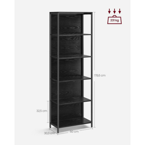 Teljes VASAGLE LED Világításos Könyvespolc 6 Szintes Acélvázas Ébenfa Fekete termékleírás
