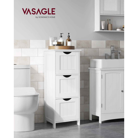 1 kép VASAGLE Nordic Slim Fürdőszobai Tárolószekrény 3 Fiókos Matt Fehér