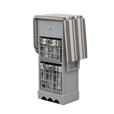 BOND 1 szürke vasalódeszka tárolóval - Praktikus és stílusos megoldás 🧺 A BOND 1 szürke vasalódeszka nem csupán egy vasalódeszka, hanem egy multifunkcionális bútordarab, amely megkönnyíti a vasalást és a tárolást. A beépített rakodótérrel és két fono...
