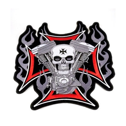 1 kép Vaskeresztben koponya és v-blokk hátfelvarró, nagyméretű