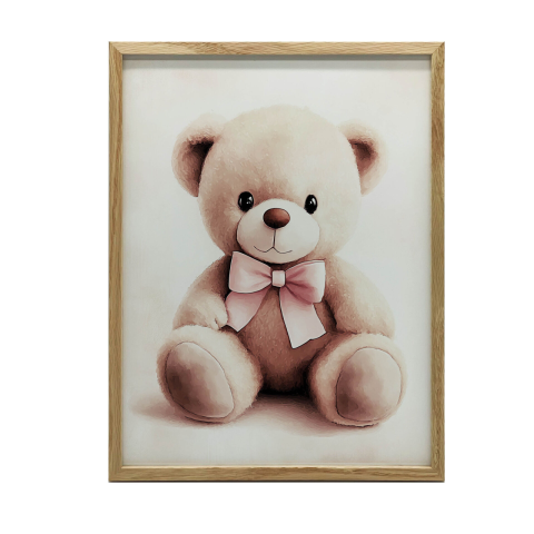 1 kép VÁSZNAFESTMÉNY ARUKOS MEDVE RÓZSASZÍN CSOMAKKÖNYVBEN 70x100 CM KERET NÉLKÜL