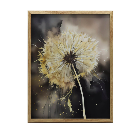 Aranypitypang Vászonkép: Elegáns faldekoráció 50x70 cm Díszítse otthonát ezzel a lélegzetelállító arany pitypang vászonképpel! A neves lengyel művész, Marcin Zbijowski tervei alapján készült kép egyedi aurát kölcsönöz minden belső térnek. A finom ara...