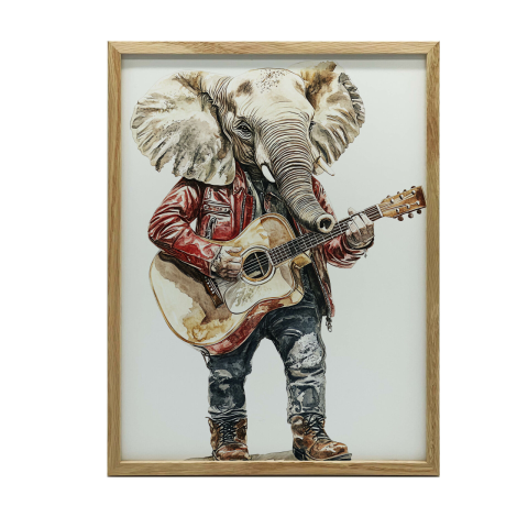 Elefántos gitáros vászonkép: Egyedi faldekoráció 70x100 cm Ez a lenyűgöző 70x100 cm-es vászonkép Marcin Zbijowski tehetséges művész alkotása, egyedi stílusban ábrázolva egy gitáron játszó elefántot. Prémium minőségű vászonra feszítve, keret nélkül, m...