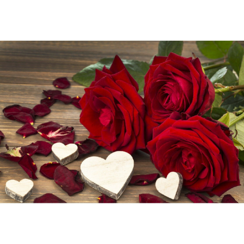 1 kép Vászon festmény, MÉDIA, Piros rózsák szívekkel, 105 x 70 cm