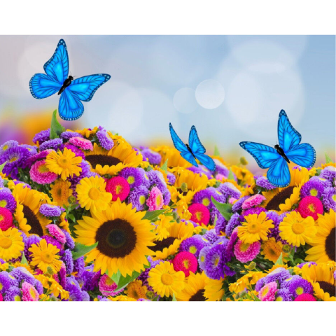 1 kép Vászon festmény, MÉDIA, Virágmező pillangókkal, 105 x 70 cm