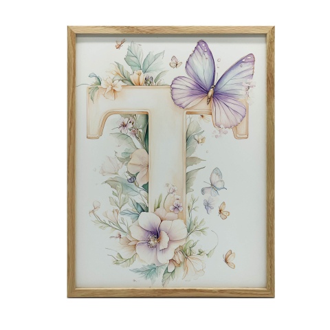 "T" betűs virágos vászonkép pillangóval: Elegáns dekoráció otthonába 🦋 Ez a gyönyörű vászonkép egyedi dekorációt kínál otthonába. A "T" betűt körülölelő virágok és pillangók finom harmóniája bármilyen helyiségbe eleganciát visz....