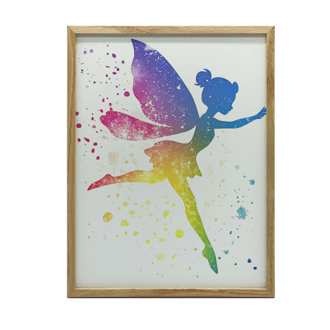 Szivárvány Tündér Vászonkép: Varázslatos Dekoráció Gyermekszobába ✨ Ez a gyönyörű vászonkép egy repülő tündért ábrázol szivárványos szárnyakkal és ruhával. A kép élénk színei és a vízfestékszerű háttér álmodozó hangulatot teremt a gyerekszobában. 5...