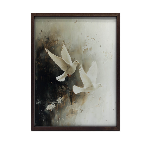 Galambos Vászonkép: Béke és elegancia otthonába 🕊️ Ez a gyönyörű, 70x100 cm-es vászonkép két repülő galambot ábrázol, finom, pasztell színekkel és texturált háttérrel. Prémium minőségű vászonra nyomtatva, keretezés nélkül, így könnyen illeszkedik bár...