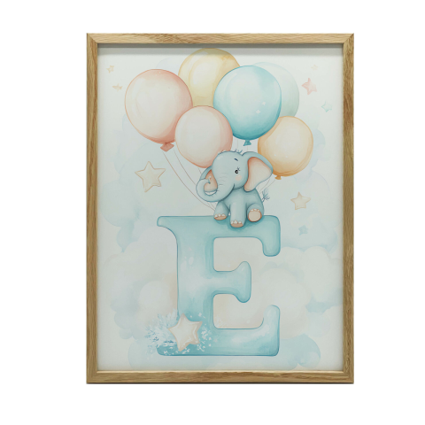 E betűs elefántos vászonkép: Gyerekszoba dekoráció 🐘 Ez a bájos vászonkép egy aranyos elefántot ábrázol, aki léggömbökkel repül az E betű fölött. Tökéletes választás gyerekszobákba, vidám és egyedi hangulatot teremtve. A kép kiváló minőségű vászonra...