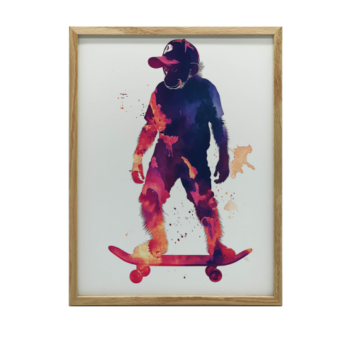 Gördeszkázó Majom Vászonkép: Stílusos és Energiával teli Dekoráció 🐒🛹 Díszítse otthonát ezzel a vagány, 70x100 cm-es vászonképpel, amely egy gördeszkán álló majmot ábrázol! A kép vibráló színei és egyedi stílusa azonnal felkelti a figyelmet, és mod...