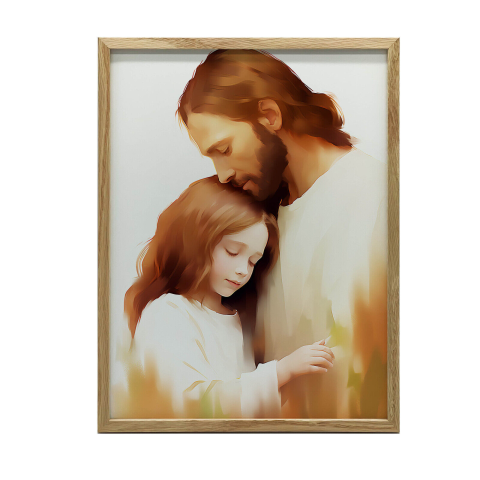 Jézus és a lány szeretetteljes vászonképe - 50x70 cm 💖 Érezze a szeretet és a béke áramlását otthonában ezzel a gyönyörű vászonképpel, mely Jézust és egy kislányt ábrázolja meghitt ölelésben. Tökéletes választás, ha egyedi, spirituális hangulatot sze...