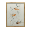 Alvóhalak - Falikép - 70x100 cm - Elegáns otthoni dekoráció 🐠 Ez a gyönyörű, 70x100 cm-es falikép három aranyhalat ábrázol, finom vízfestéssel, sötétbarna fa keretben. A kép nyugodt, békés hangulatot teremt, tökéletes választás nappaliba, hálószobáb...