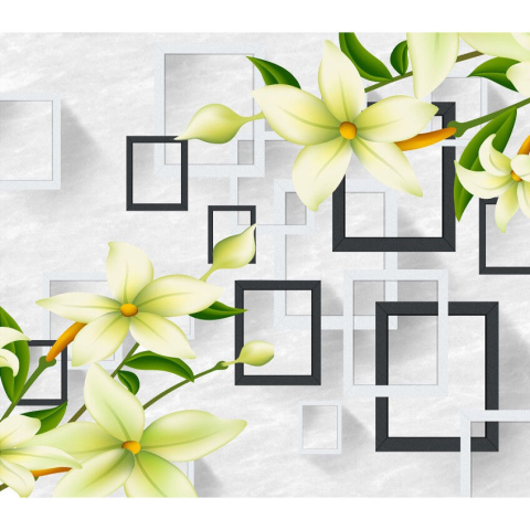 1 kép Vászonfestmény, MÉDIA, Liliomok fekete-fehér négyzetekkel, 105 x 70 cm