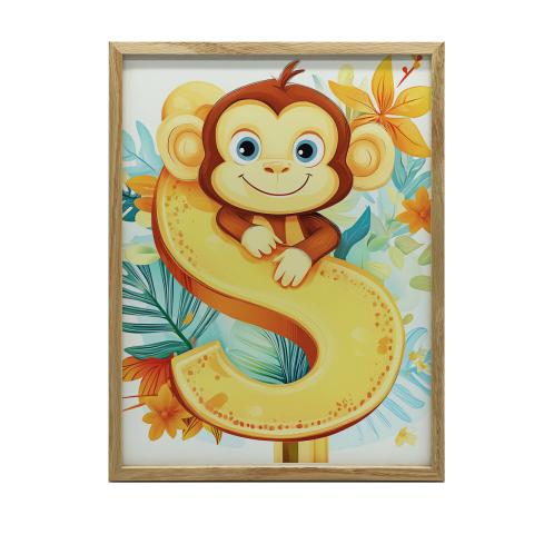 Vidám Majom és az S betű - Prémium Vászonkép (70x100 cm) Dobd fel otthonod egyedi stílusú, vidám vászonképpel! Ez a 70x100 cm-es prémium vászonkép egy aranyos majmot ábrázol, amely az S betűt öleli. A kép tökéletes választás gyerekszobába, de bármily...