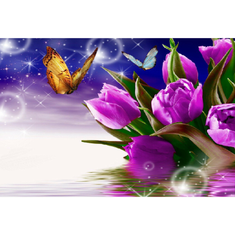 1 kép Vászonkép, MÉDIA, Pillangók és lila tulipánok, 105 x 70 cm