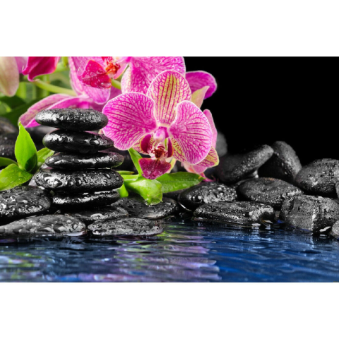 1 kép Vászonkép, MEDIA, Rózsaszín orchidea fekete kövekkel, 105 x 70 cm
