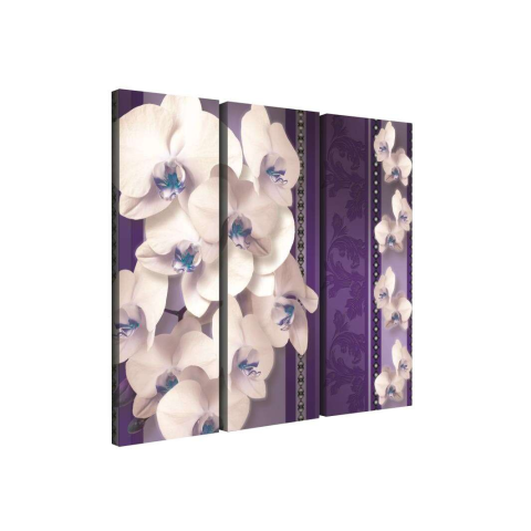 Elegáns orchidea vászonkép szett - 3 darabos, 80x90 cm Díszítse otthonát ezzel a gyönyörű, háromrészes vászonképpel, mely elegáns orchideákat ábrázol lila háttéren. A képek modern és stílusos megjelenést kölcsönöznek bármely helyiségnek. 💜 A csomag...