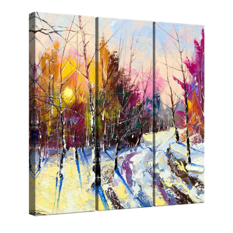 3 részes vászonkép szett: Tél - Bűvös erdő tájkép ❄️ Hozza el a téli erdő varázsát otthonába ezzel a 3 részes vászonkép szettel! A festői téli tájkép gyönyörű színei és részletgazdagsága melegséget és nyugalmat sugároz. Kiváló választás nappaliba, h...