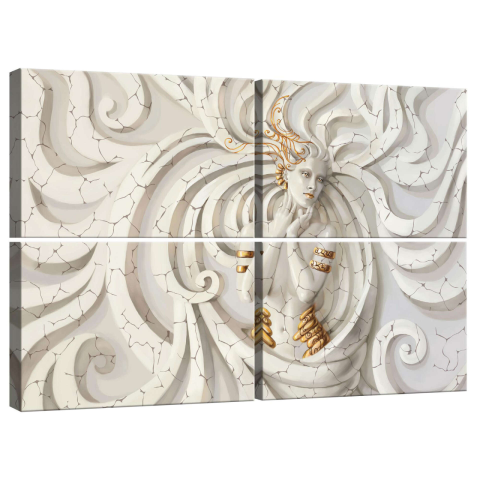 4 részes vászonkép szett: Istennő - Elegáns faldekoráció a nappaliba 🖼️ Ez a 4 részes vászonkép szett lenyűgöző dekorációja lesz otthonának. Az elegáns, fehér és arany árnyalatú istennő motívum modern és stílusos megjelenést kölcsönöz a helyiségnek. A...