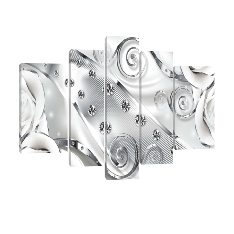 1 kép Vászonkép szett 5 darabos fehér virágos gyémánt 3D