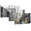New York Városi Tájkép Vászonkép Szett - 5 darabos, 170x100 cm Díszítse otthonát ezzel a lenyűgöző 5 darabos vászonkép szettel, amely New York City utcáit ábrázolja fekete-fehérben, élénk sárga részletekkel. A modern és stílusos kép tökéletes választ...